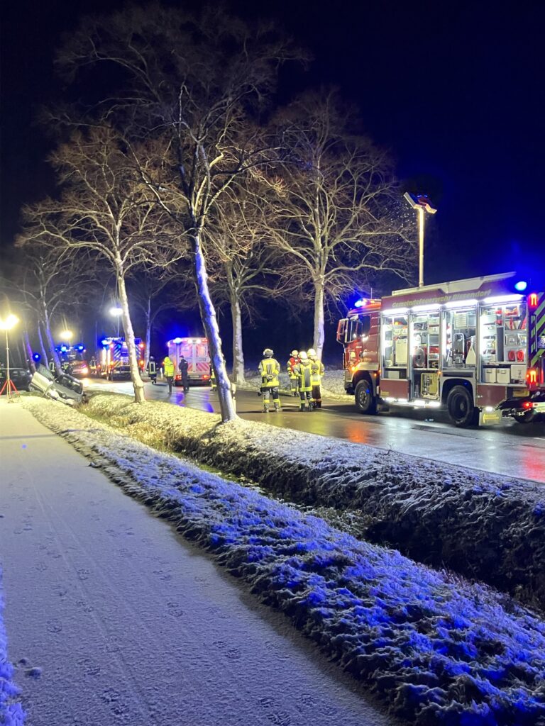 Am Sonntagmorgen wurden wir gemeinsam mit der Feuerwehr Jeggen, dem Rettungsdienst und der Polizei zu einem Verkehrsunfall auf die Wissinger Straße gerufen.